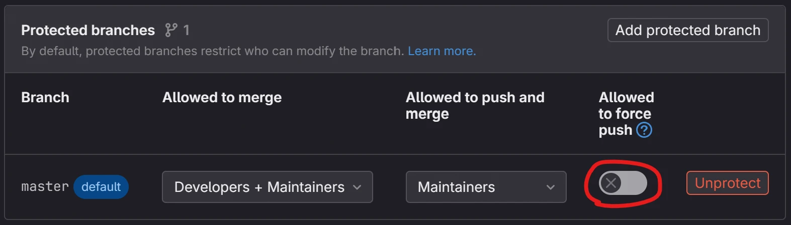 git push --force --allGitLab 默认对 master 分支有保护, 需要允许 force push.