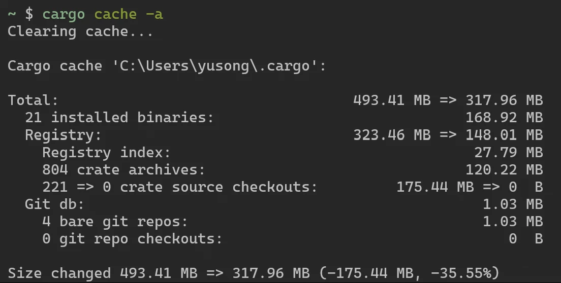 cargo cache -a # 短选项
