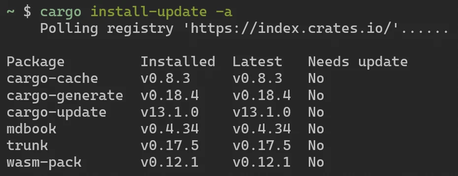 cargo install-update -a # 短选项