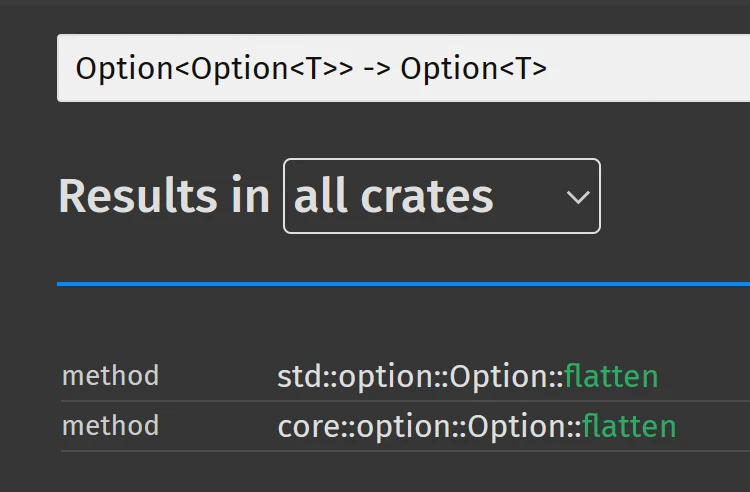 从 Rust 1.74.0 起, 文档搜索对于泛型的支持变得更好: