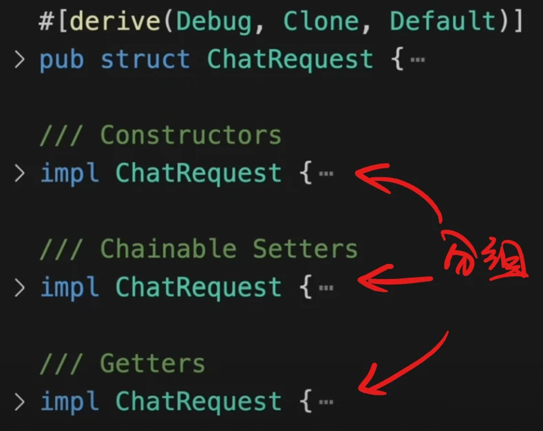 此时可以将 impl 代码块中的函数, 根据它们的相关性, 拆成多组.