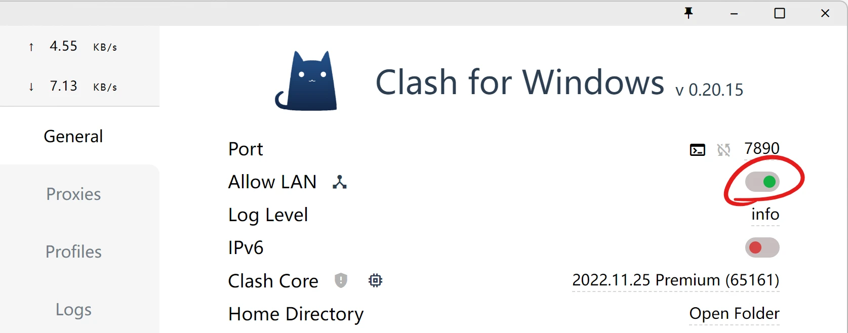 如下图所示, 以 clash 举例, 需要开启红圈中的选项.