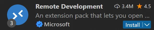 插件配置: 安装 Remote Development 插件包 (其中包含远程开发以及 WSL 相关插件).