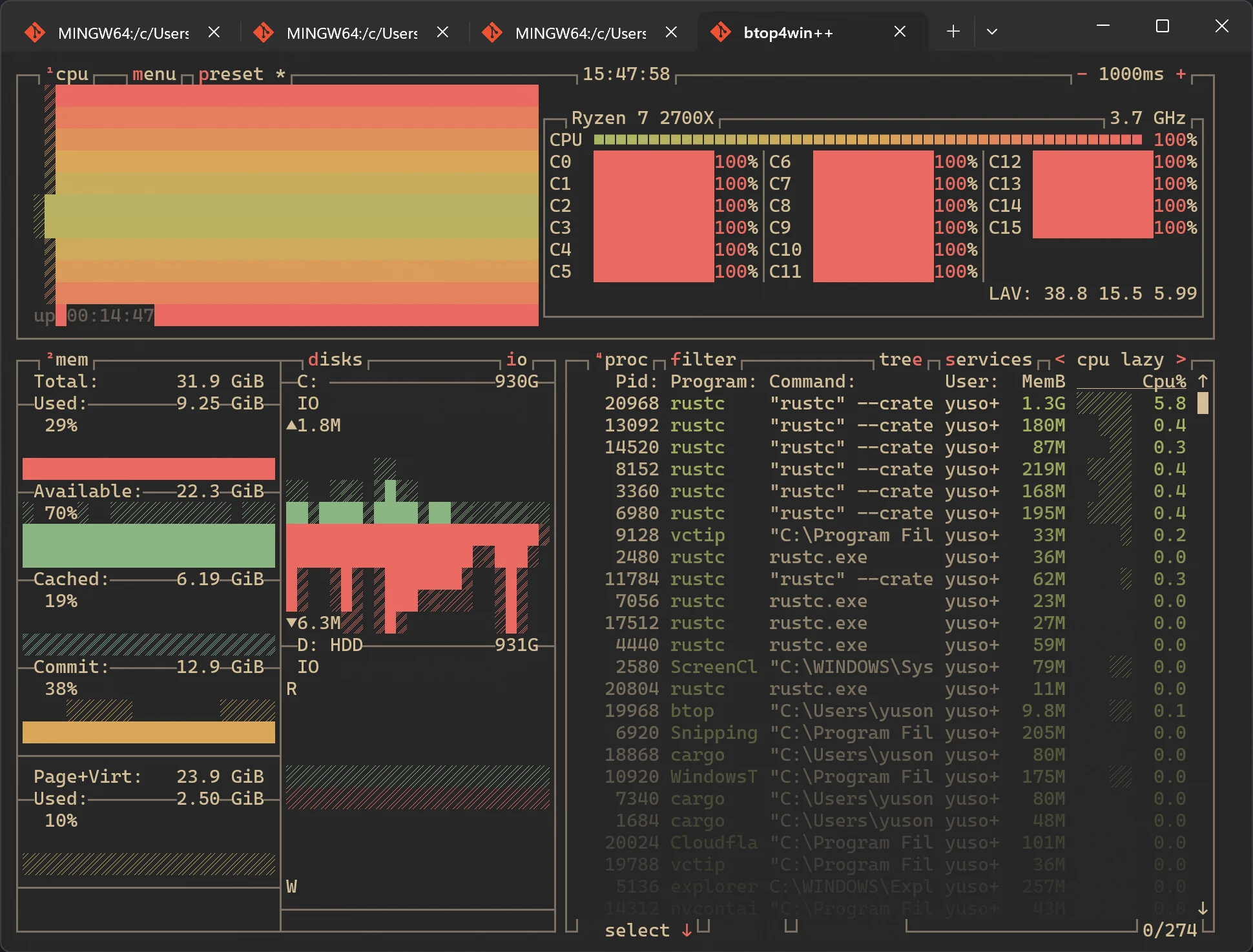 而 btop 就是 top 的上位替代. 界面更美观清晰, 可定制, 更易用, 且跨平台.