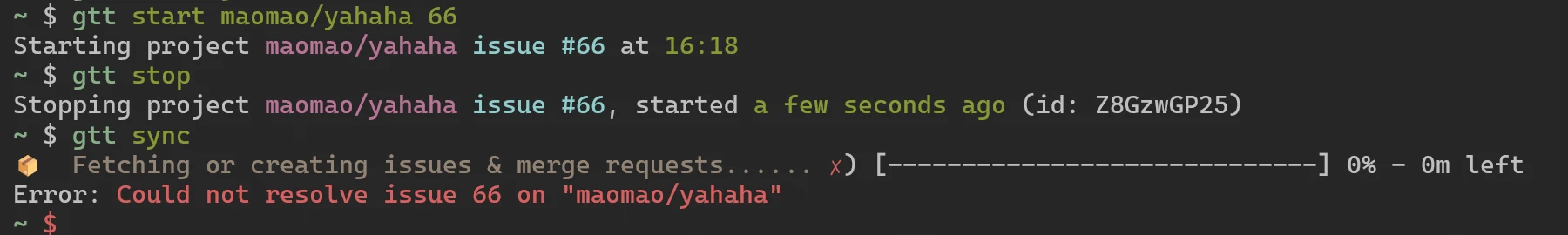 gtt sync # 将本地的时间记录上传至 GitLab.