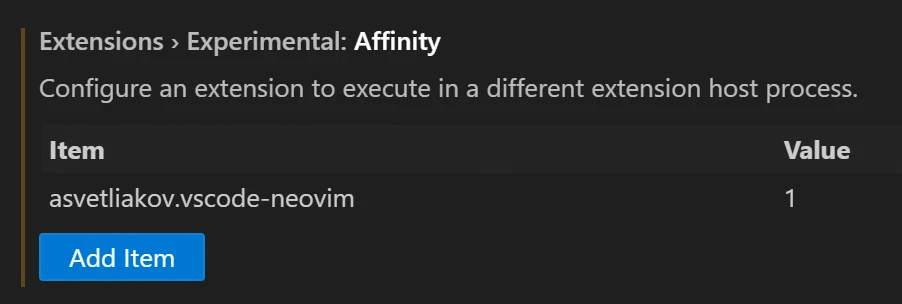 为了性能更优, 建议使用单独的进程运行 VSCode Neovim 插件: