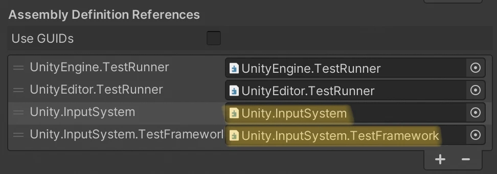 要想测试 InputSystem, 则一定要在测试程序集中添加下图中的程序集引用: