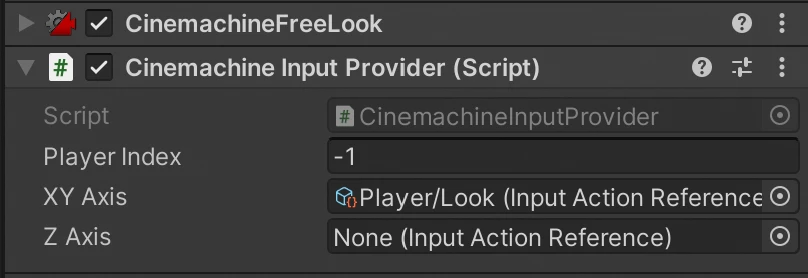 下图中的 Cinemachine Input Provider 组件来自于 Cinemachine Package.