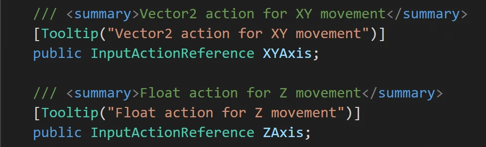 上图中的 XY Axis 和 Z Axis 所引用的类型是 InputActionReference, 如下图所示.InputActionReference 就是我们之前编辑的 Input Actions asset 中具体的某个 action.