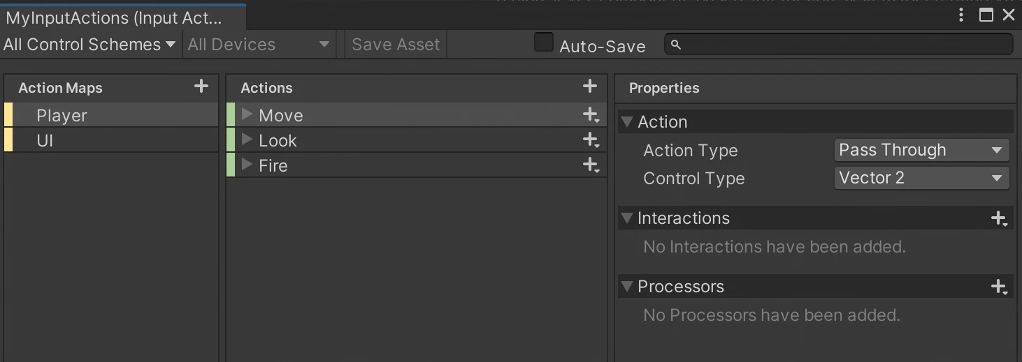 所有的输入行为都可以在 Input Actions asset 中定义.