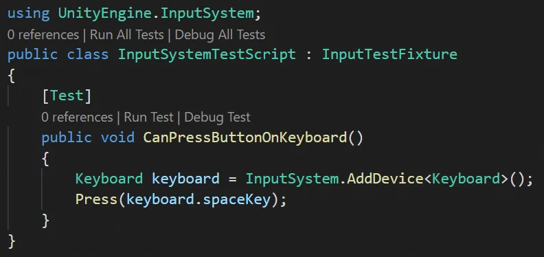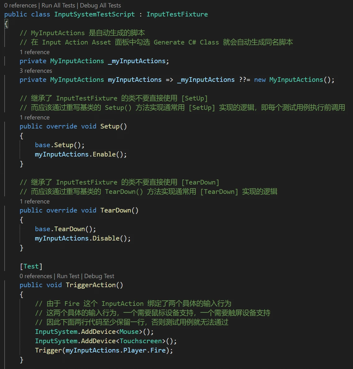 - Input System 的初始状态中欠缺的仅仅是输入设备, 因此需要在测试用例中指明.