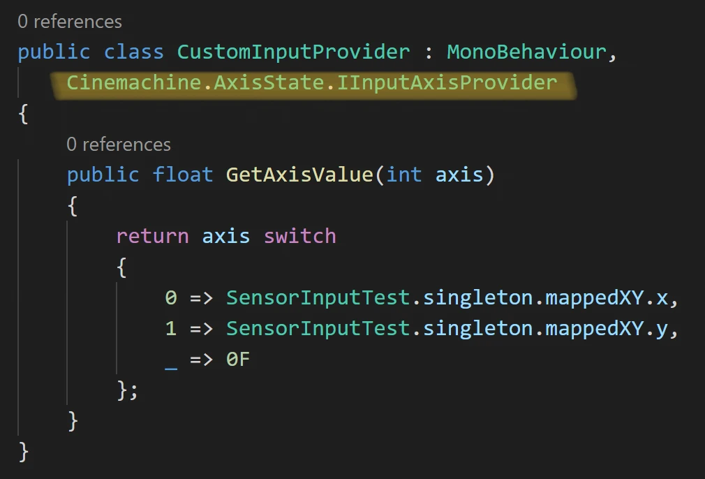 重点是需要实现 Cinemachine.AxisState.IInputAxisProvider 接口.