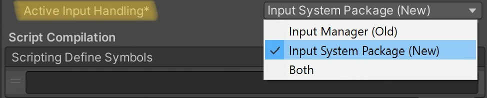 如果想兼容旧的输入系统, 则可以选择 Both.