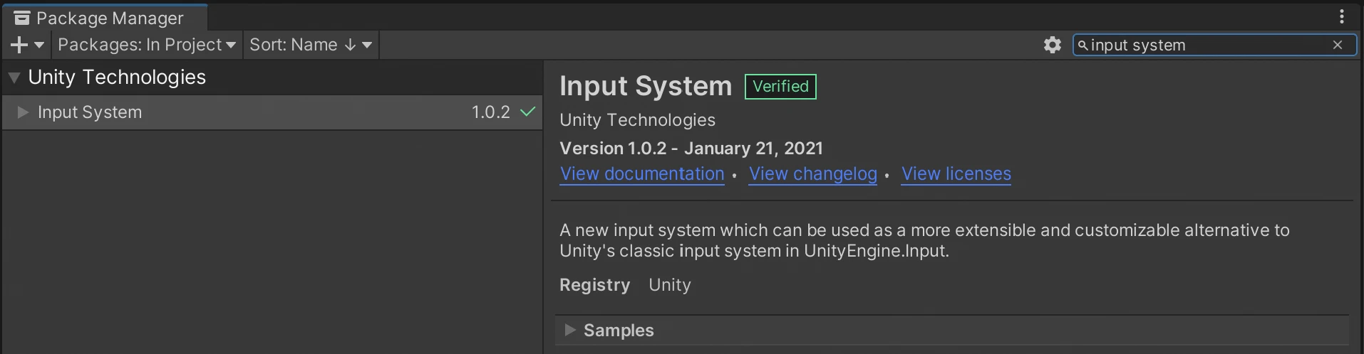 Input System 以 package 的形式发布, 可以在 Package Manager 中找到: