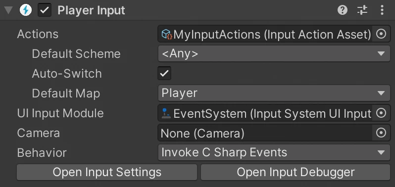 MyInputActions在运行时中只有一个实例. myInputActions.Enable()和myInputActions.Disable()的调用应该与游戏的生命周期同步.